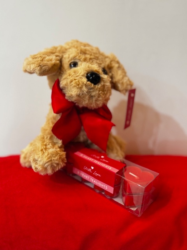 Available on its own or with heart shaped candles wrapped into a beige heart shape box, lined in red tissue paper and tied at the top with a ribbon.